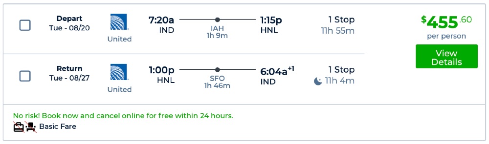 Amazing deal: Minneapolis, New Orleans, Indianapolis to Honolulu, Hawaii and vice versa flight round-trip as low as $412.
