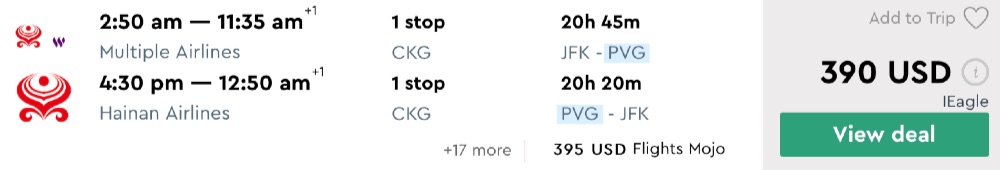 Amazing deal: New York to Shanghai, China flights round-trip as low as $390.