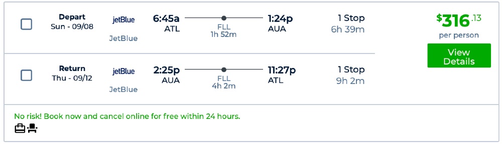 Atlanta to Aruba for $316 round-trip