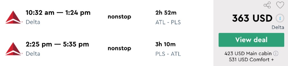 Amazing deal: Miami, New York or Atlanta to Turks and Caicos flight round-trip as low as $225.