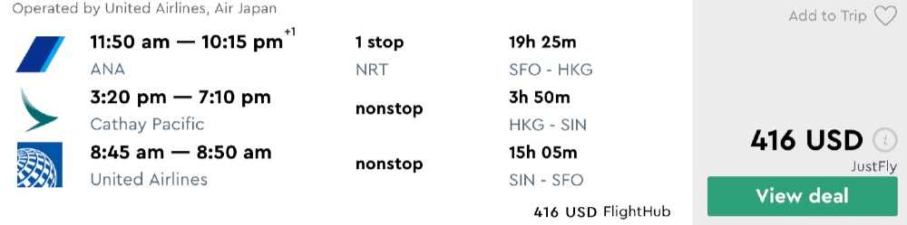 Amazing deal: San Francisco to Hong Kong and Singapore flight round-trip as low as $416.