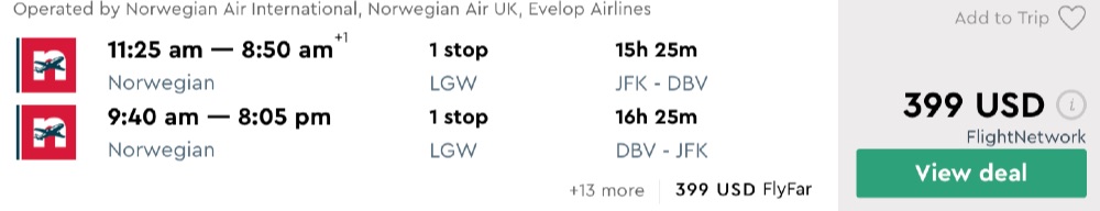 Amazing deal: New York to Croatia: Dubrovnik flight round-trip as low as $399.