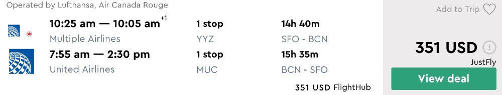 Amazing deal: San Francisco or Los Angeles to Barcelona, Spain flights round-trip as low as $351.
