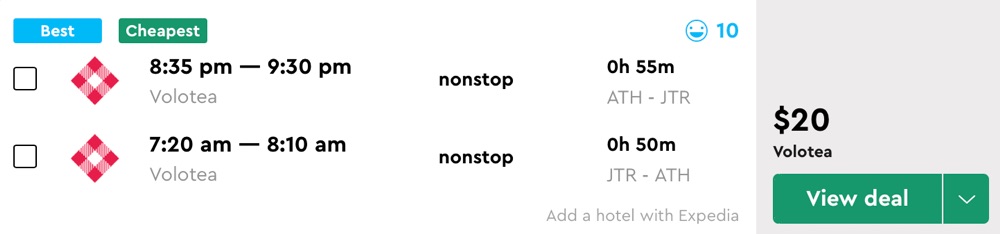 To take advantage of this deal — you would need to book flight from New York to Athens and Athens to Santorini separately. Flights to Santorini are in range from $20 – $100 round-trip. Note, the possible baggage fees.