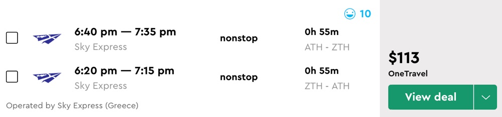 To take advantage of this deal — you would need to book flight from New York to Athens and Athens to Zakynthos separately. Flights to Santorini are in range of $100 round-trip. Note, the possible baggage fees.