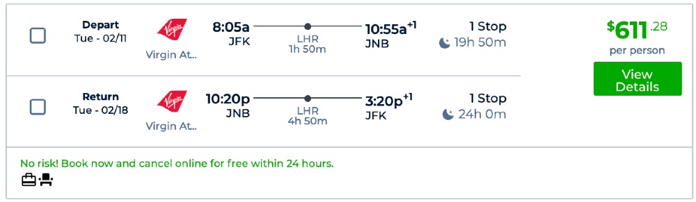 Virgin Atlantic! New York, Washington DC, Boston to South Africa: Johannesburg from $565 round-trip