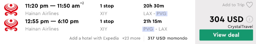 Amazing deal: Los Angeles to China: Shanghai flight round-trip as low as $304.