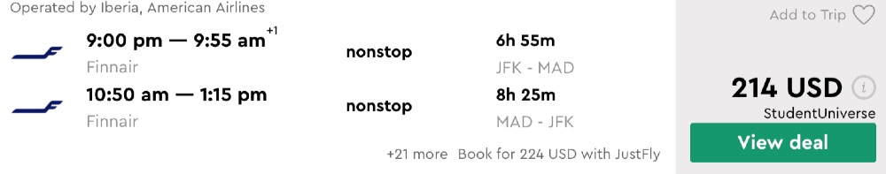 Amazing deal: New York to Madrid, Spain flights round-trip as low as $214.