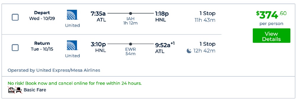 Amazing deal: Atlanta to Hawaii: Honolulu and vice versa flight round-trip as low as $375.