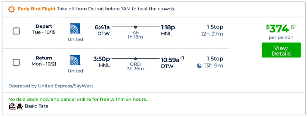 Amazing deal: Detroit or Minneapolis to Hawaii: Honolulu and vice versa flight round-trip as low as $375.