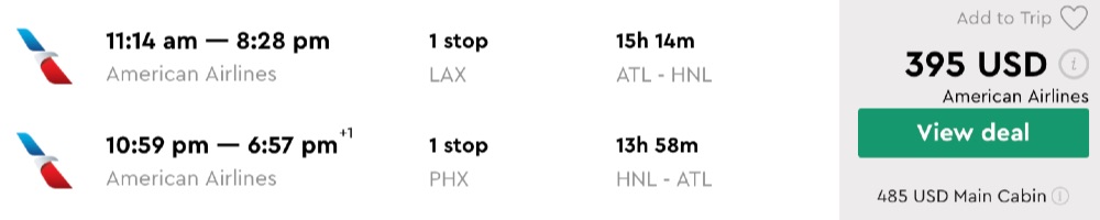 AA! Atlanta to Hawaii: Honolulu and vice versa from $395 round-trip
