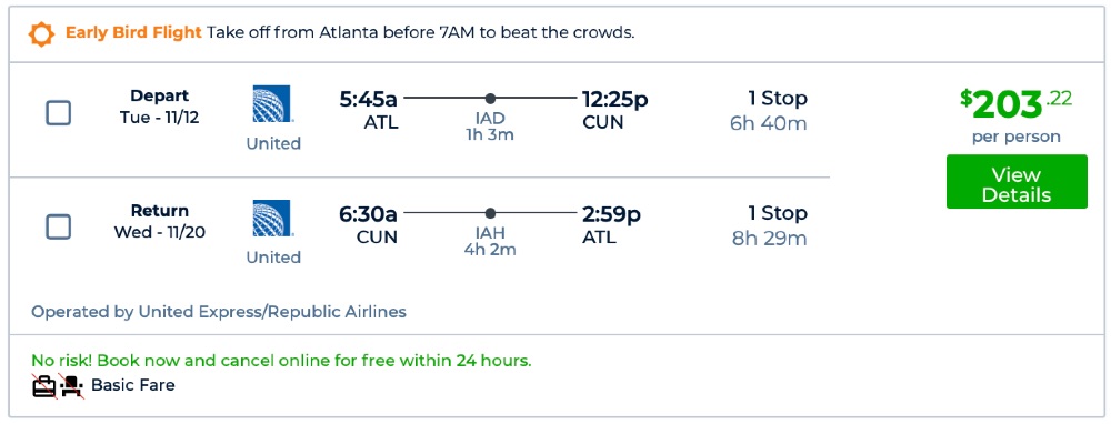 Amazing deal: Atlanta to Cancun (Mexico) flight round-trip as low as $204.
