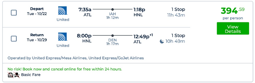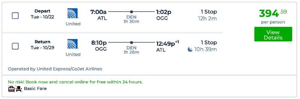 Few dates left! Atlanta to Hawaii: Maui or Oahu and vice versa for $395 round-trip