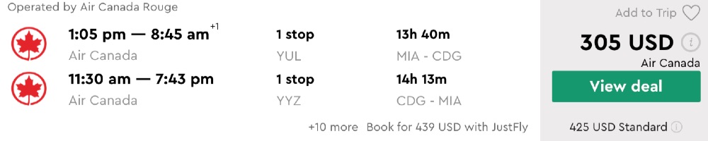 Newark (nonstop), Miami, Boston to Paris, France from $254 round-trip