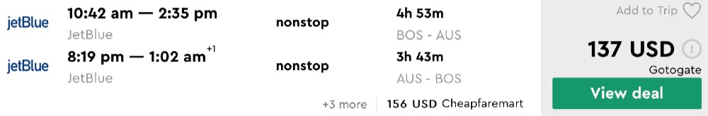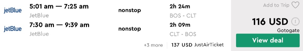 Amazing deal: Boston to Charlotte, Austin, Nashville, Charleston and vice versa flight round-trip as low as $116.