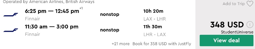 Amazing deal: New York, Boston, Orlando, Los Angeles, San Francisco to London, UK flight round-trip as low as $306.