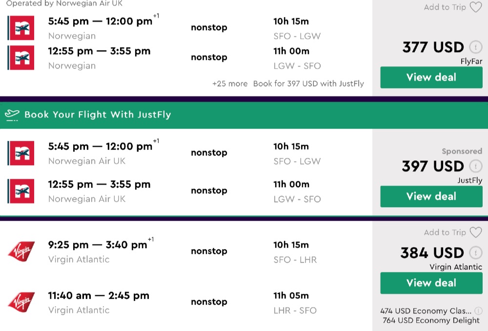 Virgin Atlantic/Oneworld/Norwegian