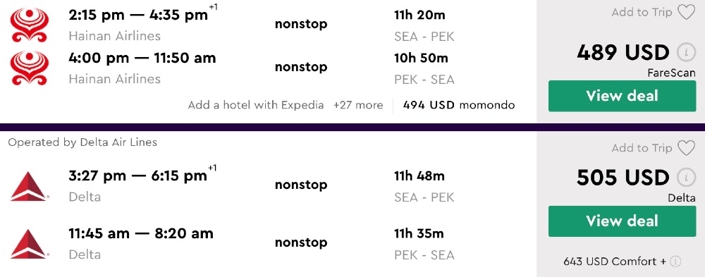 Amazing deal: Seattle to China: Beijing or Shanghai flight round-trip as low as $489.