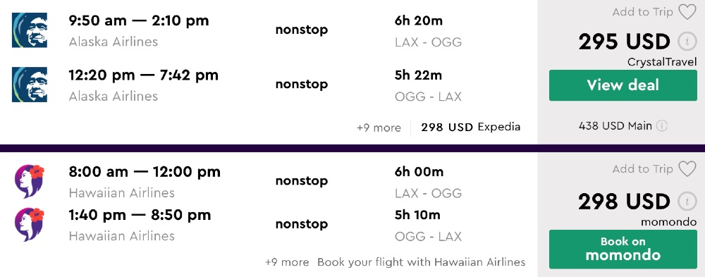 Amazing deal: Los Angels or San Francisco to Hawaii: Maui and vice versa flight round-trip as low as $278.