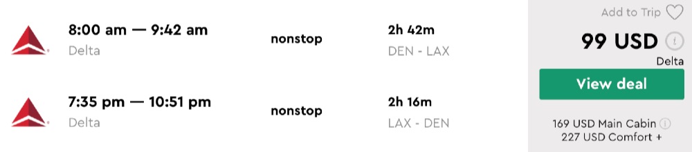 Amazing deal: Denver to Los Angeles and vice versa flights round-trip as low as $99.