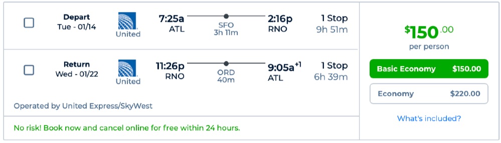 Amazing deal: Atlanta to Reno, Nevada (Lake Tahoe) and vice versa flight roundtrip as low as $150.