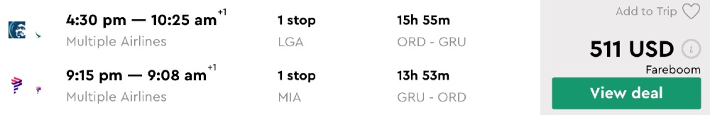 Amazing deal: Boston, Chicago, Washington DC, Charlotte, Phoenix, Houston to Sao Paulo, Brazil flights round-trip as low as $511.