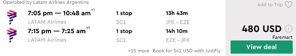 Amazing deal: New York to Buenos Aires, Argentina flights round-trip as low as $480.