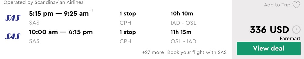 Amazing deal: Chicago, Newark (nonstop), Washington DC, Los Angeles to Oslo, Norway flight round-trip as low as $321.
