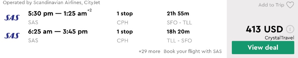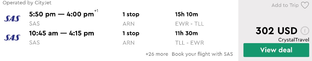 Amazing deal: Newark, Chicago, Washington DC, Miami, Los Angeles, San Francisco, Boston to Tallinn, Estonia flight round-trip as low as $302.
