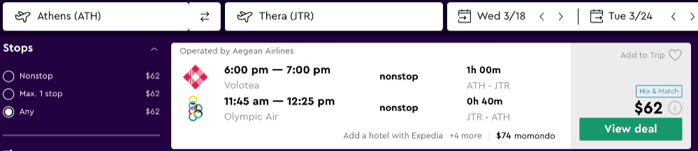 To take advantage of this deal — book flight from Los Angeles to Athens and Athens to Santorini separately.