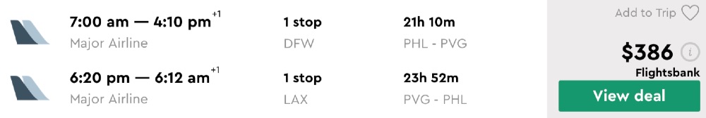 Amazing deal: Philadelphia, Boston, Miami, Phoenix to China: Shanghai flight round-trip as low as $386.