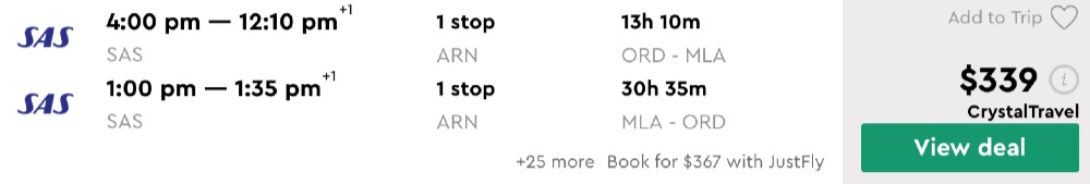 Amazing deal: Newark and Chicago to Malta flight round-trip as low as $289.