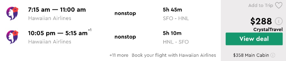 Amazing deal: San Francisco to Hawaii: Honolulu (Oahu) and vice versa flight round-trip as low as $288.
