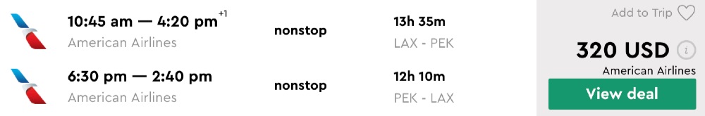 Amazing deal: Los Angeles to Beijing, China flight round-trip as low as $320.