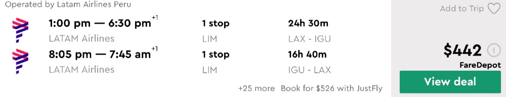 Amazing deal: Los Angeles to Brazil: Sao Paulo or Iguazu Falls flight round-trip as low as $407.