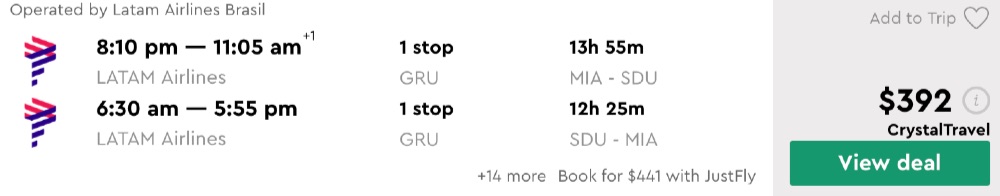 Amazing deal: Miami to Rio De Janeiro, Brazil flights round-trip as low as $392.