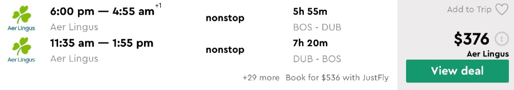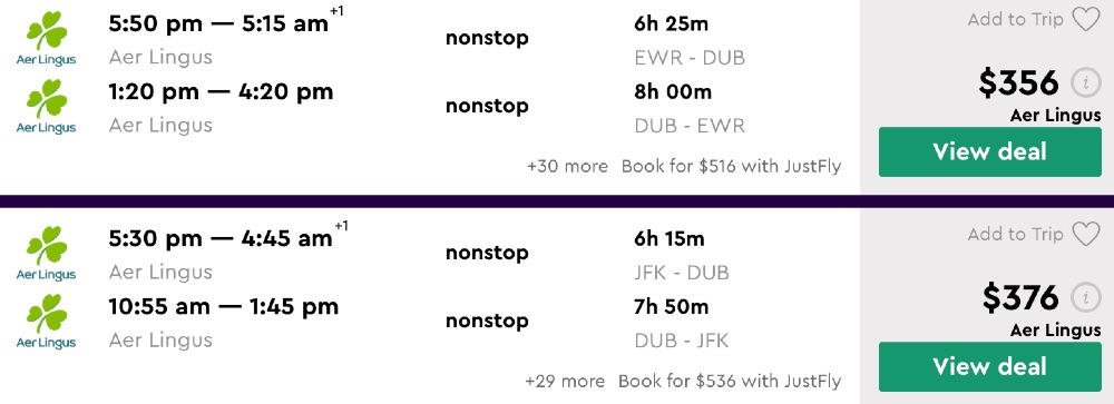 Amazing deal: New York, Newark, Boston to Dublin, Ireland flight round-trip as low as $356.