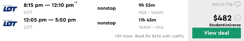 Amazing deal: New York or Miami to Warsaw, Poland flight roundtrip as low as $482.