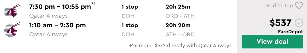 Qatar Airways! Chicago – Athens, Greece for $537 round-trip