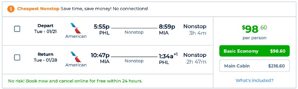 Amazing deal: Philadelphia – Miami and vice versa flight, round-trip as low as $98.