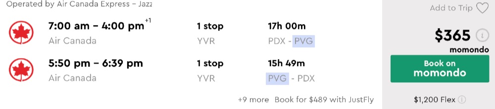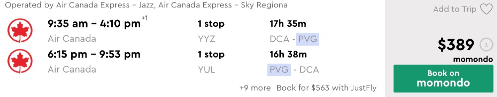 Amazing deal: DCA, BOS, MIA, MCO, CLT, PHL, DEN, DFW, IAH, PDX, SEA – Shanghai, China flight round-trip as low as $365.
