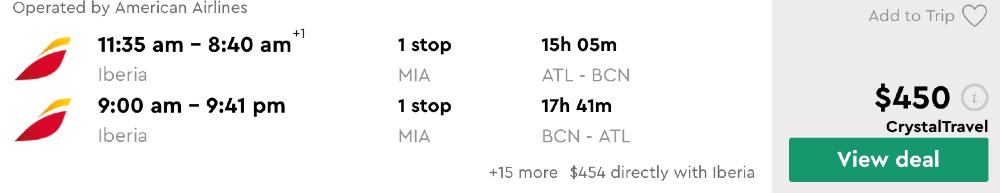 Amazing deal: Atlanta – Barcelona, Madrid or Nice flight round-trip as low as $450.
