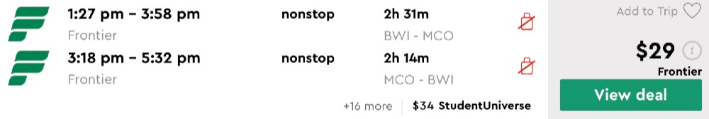 Amazing deal:Baltimore to Orlando, Florida and vice versa flight round-trip as low as $29.