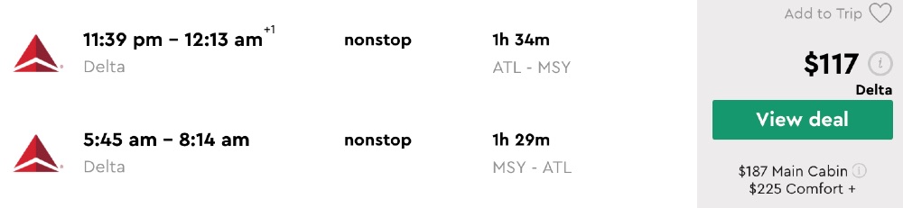 Amazing deal: Atlanta to New Orleans and vice versa flight, round-trip as low as $117.