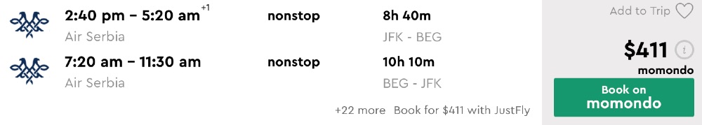 Amazing deal: New York – Belgrade, Serbia flight round-trip as low as $411.