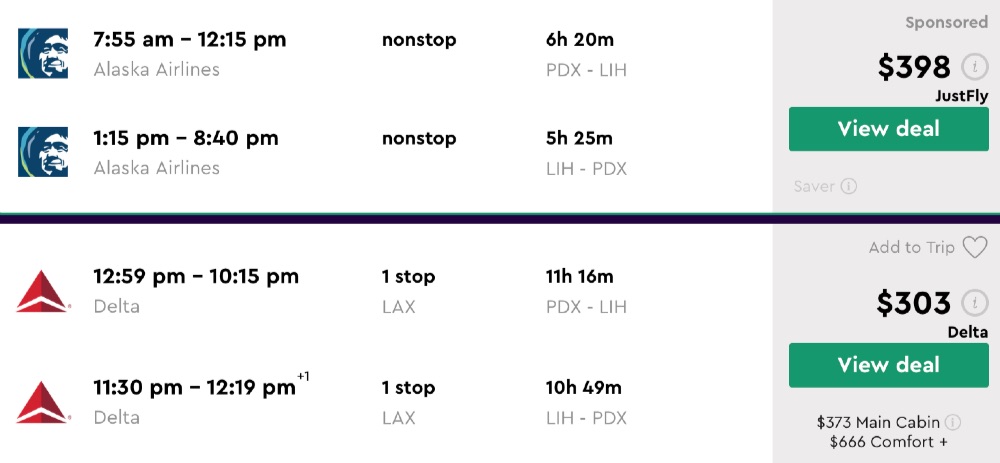 Amazing deal: Portland and San Francisco – Hawaii: Kauai and vice versa flights round-trip as low as $320.