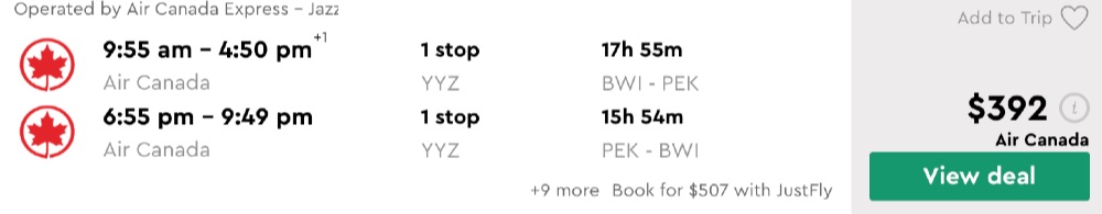Amazing deal: MCO, PHL, DEN, DFW, PDX, SEA, BWI, ORD, BOS, IND, MSY, BNA to Beijing, China flight round-trip as low as $329.
