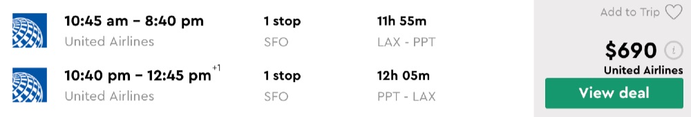 ATL, MCO, PHL, WAS, EWR, BOS, DTW, DEN, SLC, PHX, PDX, SEA, SFO (nonstop), LAX to French Polynesia for $675-889 round-trip