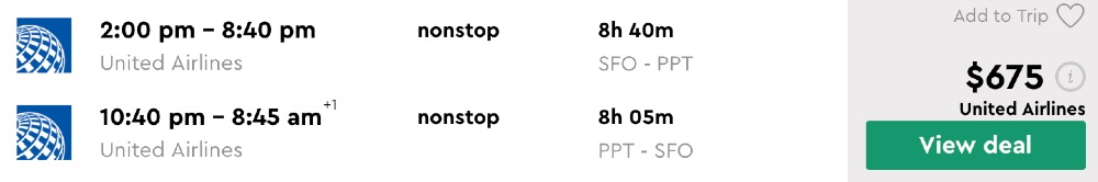 Amazing deal: ATL, MCO, PHL, WAS, EWR, BOS, DTW, DEN, SLC, PHX, PDX, SEA, SFO (nonstop), LAX to French Polynesia flight round-trip as low as $675.