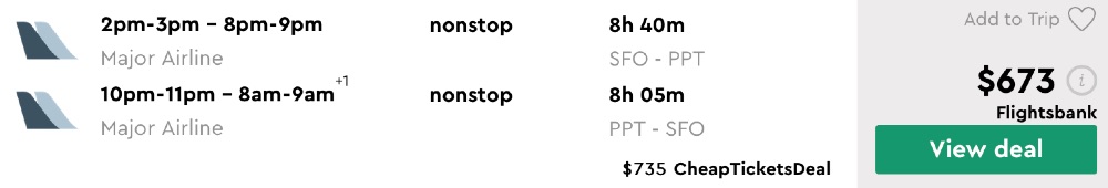 Amazing deal: San Francisco — French Polynesia/Singapore/Israel flight round-trip as low as $612.